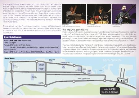 RYUZUのミニコンサートが、コタキナバル市内CAD Center for Arts&Design(Tel 088-310-868)にて